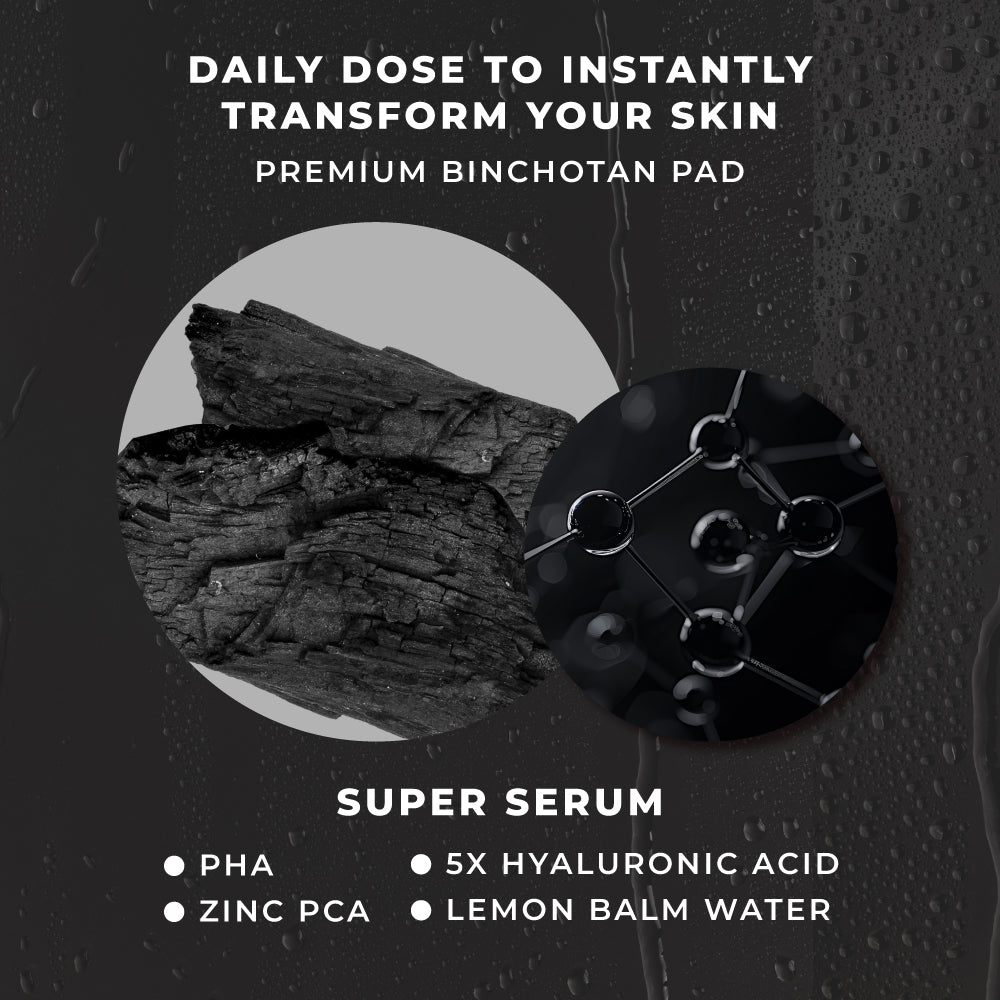 Efficacy: Gentle exfoliation, pore tightening, and long-lasting hydration with Premium Binchotan-infused pads enriched with SUPER SERUM complex